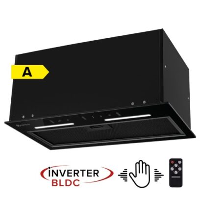 Витяжка ідеально вписується в будь-який кухонний гарнітур завдяки своїй вбудованій конструкції. Вона легко інтегрується в навісну шафу, створюючи ефект єдиної поверхні та зберігаючи лаконічність ліній вашого інтер’єру. Чорний колір фасаду з загартованого скла універсальний і легко поєднується з будь-якою кольоровою гамою. Корпус з міцного фарбованого металу захищає прилад від пошкоджень, а фасадна частина з термостійкого загартованого скла легко очищається і стійка до високих температур. Вбудована конструкція забезпечує зручний доступ до фільтрів для їх очищення.