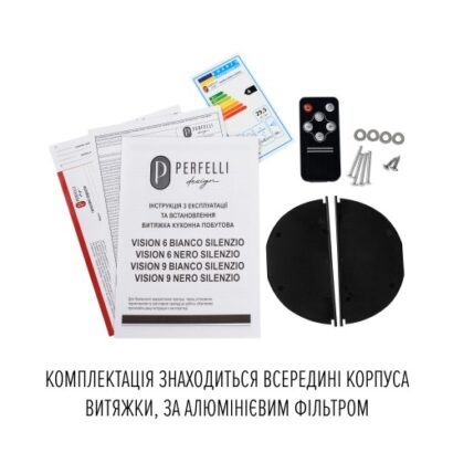 Основні характеристики повновбудованої витяжки для кухні PERFELLI DESIGN VISION 9 NERO SILENZIO: