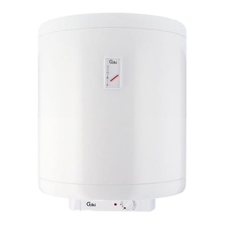 Бойлер TIKI GBF 50 V9 – електричний накопичувальний водонагрівач об’ємом 50 літрів з вертикальною установкою та простим механічним управлінням. У цій моделі встановлені 2 “сухих” ТЕНа по 700 Вт – це значить, що ТЕН поміщений в спеціальну колбу з металу підвищеної міцності, що виключає контакт нагрівального елемента з водою і виключає ймовірність пробою або короткого замикання. Регулятор температури розташований відразу на корпусі, що теж дуже зручно. Максимальна температура нагріву води 75 °C. Бак виготовлений з листової сталі.