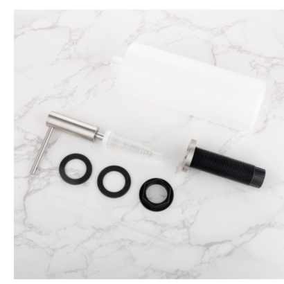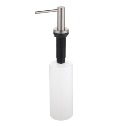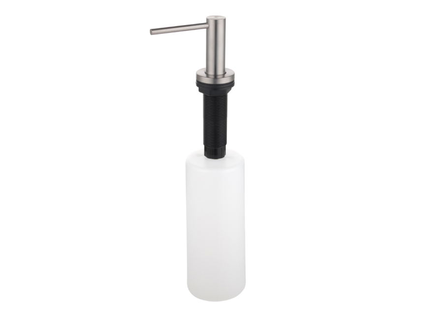 Дозатор для миючого засобу Nett встановлюється на кухонну мийку або на стільницю, діаметр отвору 30 мм, і дозволяє звільнити простір поруч з мийкою від ємностей з миючими засобами. Головка дозатора виконаний з нержавіючої сталі 304 марки з брашированним покриттям.