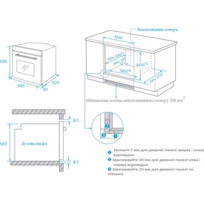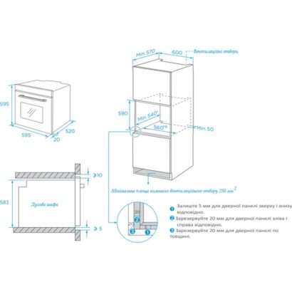 | Розміри ніші для вбудовування (ВхШхГ): | 59х56х57 см |