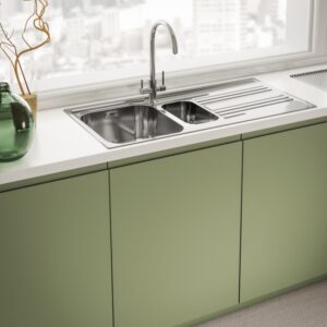 Комбінований двоважільний кухонний змішувач Fabiano FKM 31.14 SS Nano Copper з роздільними аераторами для проточної та фільтрованої води.