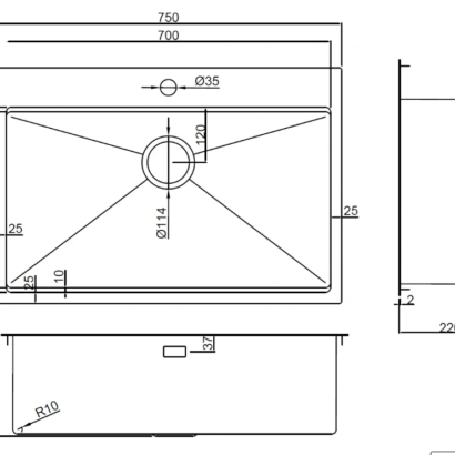 Завдяки закругленим кутам догляд за мийкою стає максимально спрощеним. Висока стійкість до механічних пошкоджень та хімії роблять її надійною. Рельєф дна полегшує стікання води.