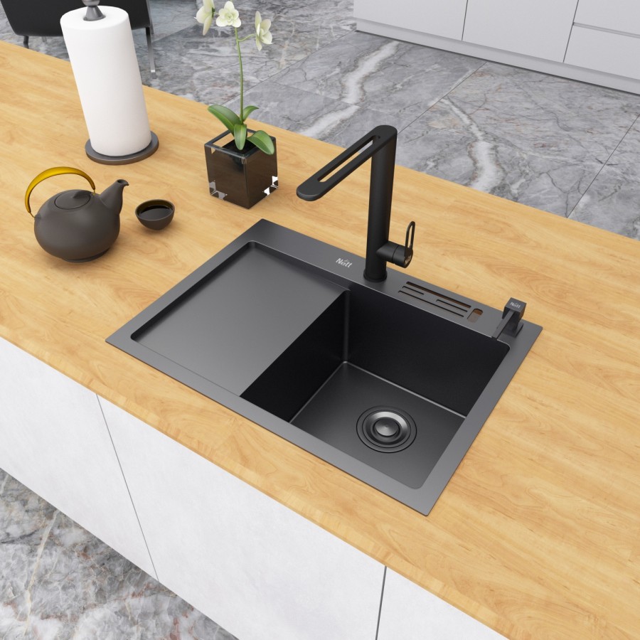 Елегантна чорна мийка укомплектована спеціалізованим Nano покриттям, яке підвищує її стійкість до подряпин та інших механічних пошкоджень. PVD покриття також ефективно протистоїть корозії.