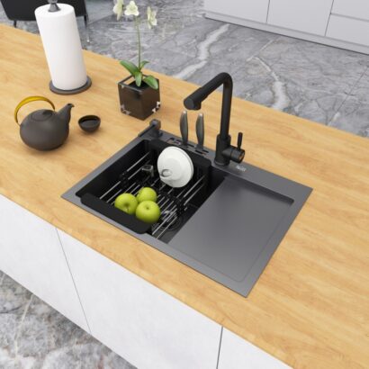 Чорна кухонна мийка з вишуканим дизайном принесе вишуканий шарм до ансамблю будь-якої кухні.