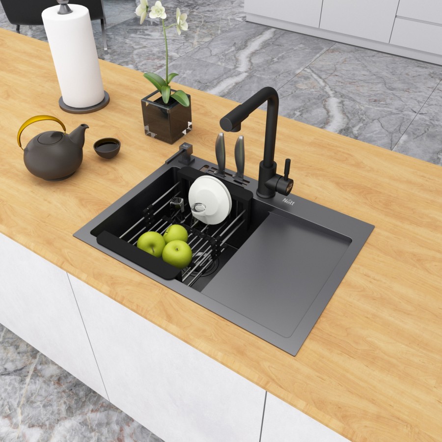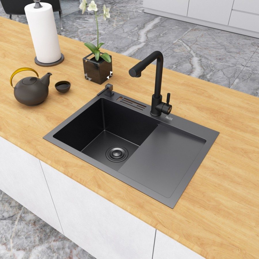 Елегантна чорна мийка укомплектована спеціалізованим Nano покриттям, яке підвищує її стійкість до подряпин та інших механічних пошкоджень. PVD покриття також ефективно протистоїть корозії.