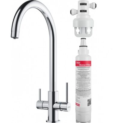 | ОСОБЛИВОСТІ: | Змішувач з двома важелями: лівий для фільтрованої води, правий для холодної і гарячої Потік води становить до 2 л/хв, або 2880 л/добу Безшумна робота Змішувач можна монтувати впритул до стіни |