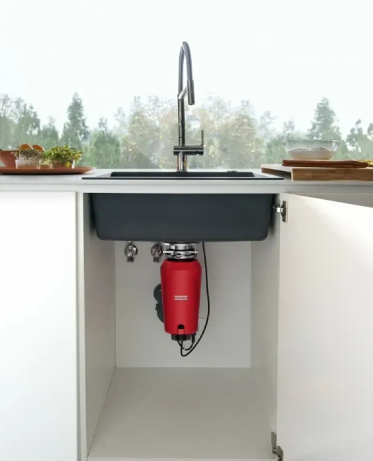 Стильний дизайн і раціональне використання простору: Компактний корпус пристрою створено з урахуванням потреб сучасної кухні. Він легко вміщується під мийкою, не займаючи зайвого місця і чудово вписується в інтер’єр.
