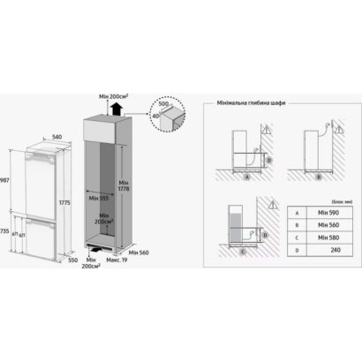 | Розміри ніші для вбудовування (ВхШхГ): | 178,2х56х56 см |