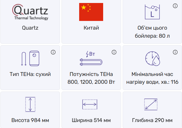 Технічні параметри бойлера Quartz Gland 80 V: надійність і ефективність