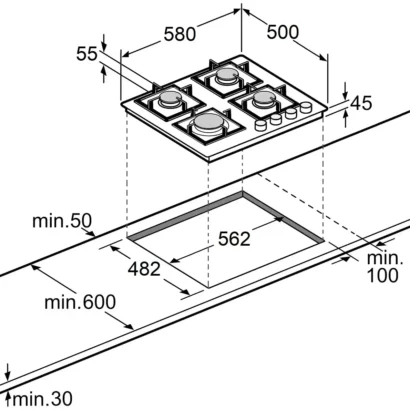 • Газова незалежна варильна панель.