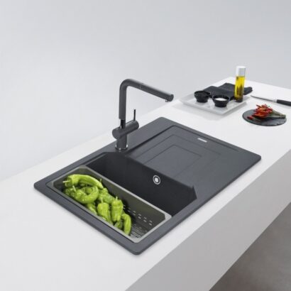 Кухонна мийка Franke Urban UBG 611-78 | 114.0701.804 | гранітна | врізна | накладна | оборотна | Онікс | пластиковий коландер у комлекті | комплект: коландер, вентиль 3½”, сифон