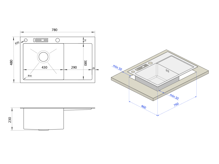 Унікальна особливість нашої мийки – вбудовані отвори для ножів. Тепер вам не доведеться купувати окремі підставки та піклуватися про чистоту вашої робочої поверхні.