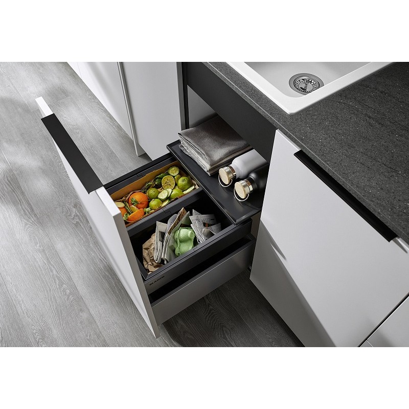 - Різноманітні можливості сортування та зберігання відходів завдяки вибору комбінацій відер